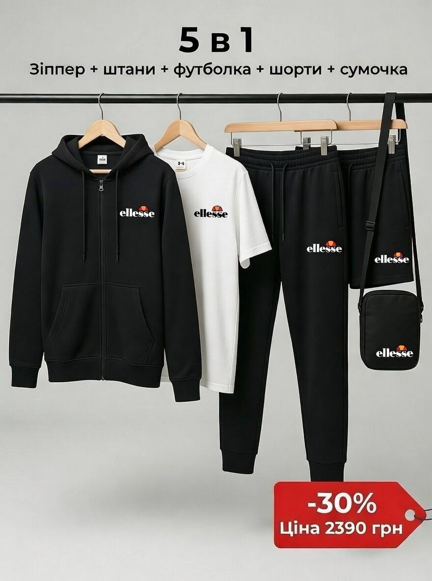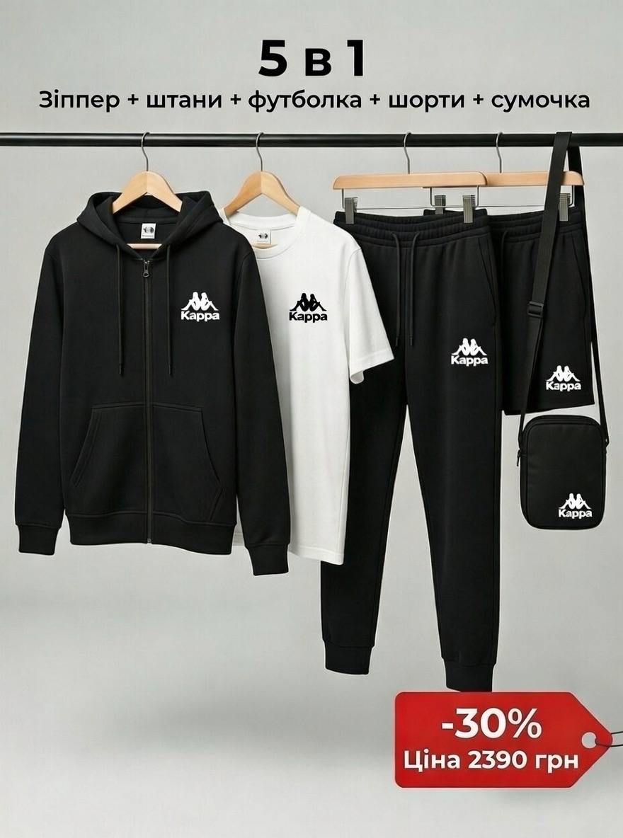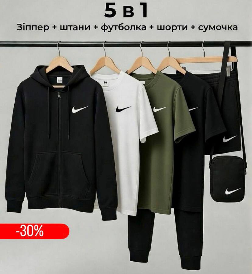 Топові комплекти 5в1: Зіппер + штани + футболка + шорти + сумочка